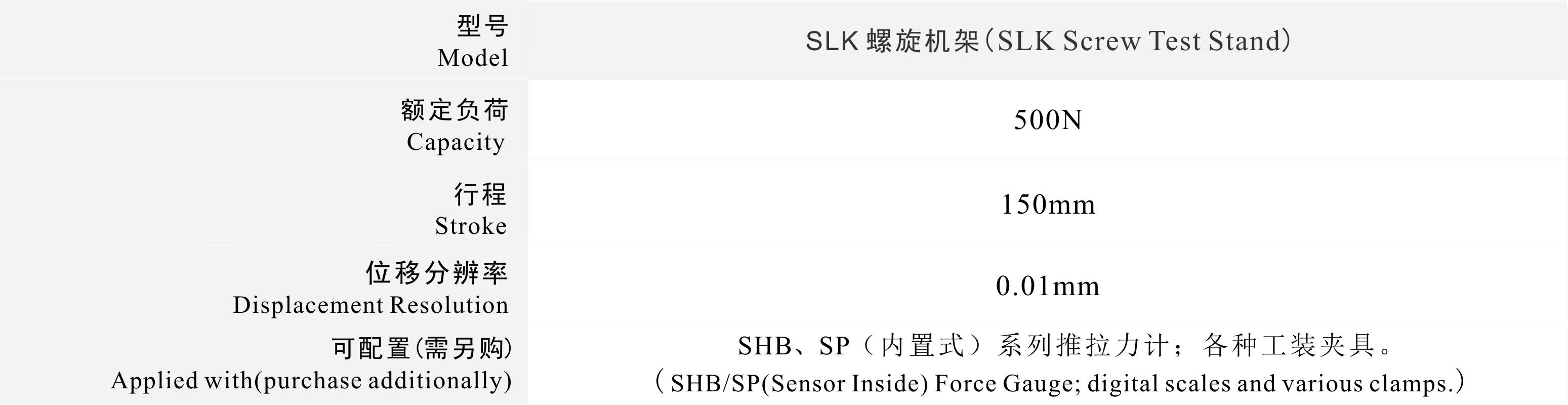 可配置(需另購(gòu)):SN、SHB/SP(內(nèi)置式)推拉力計(jì)、各種工裝夾具。
