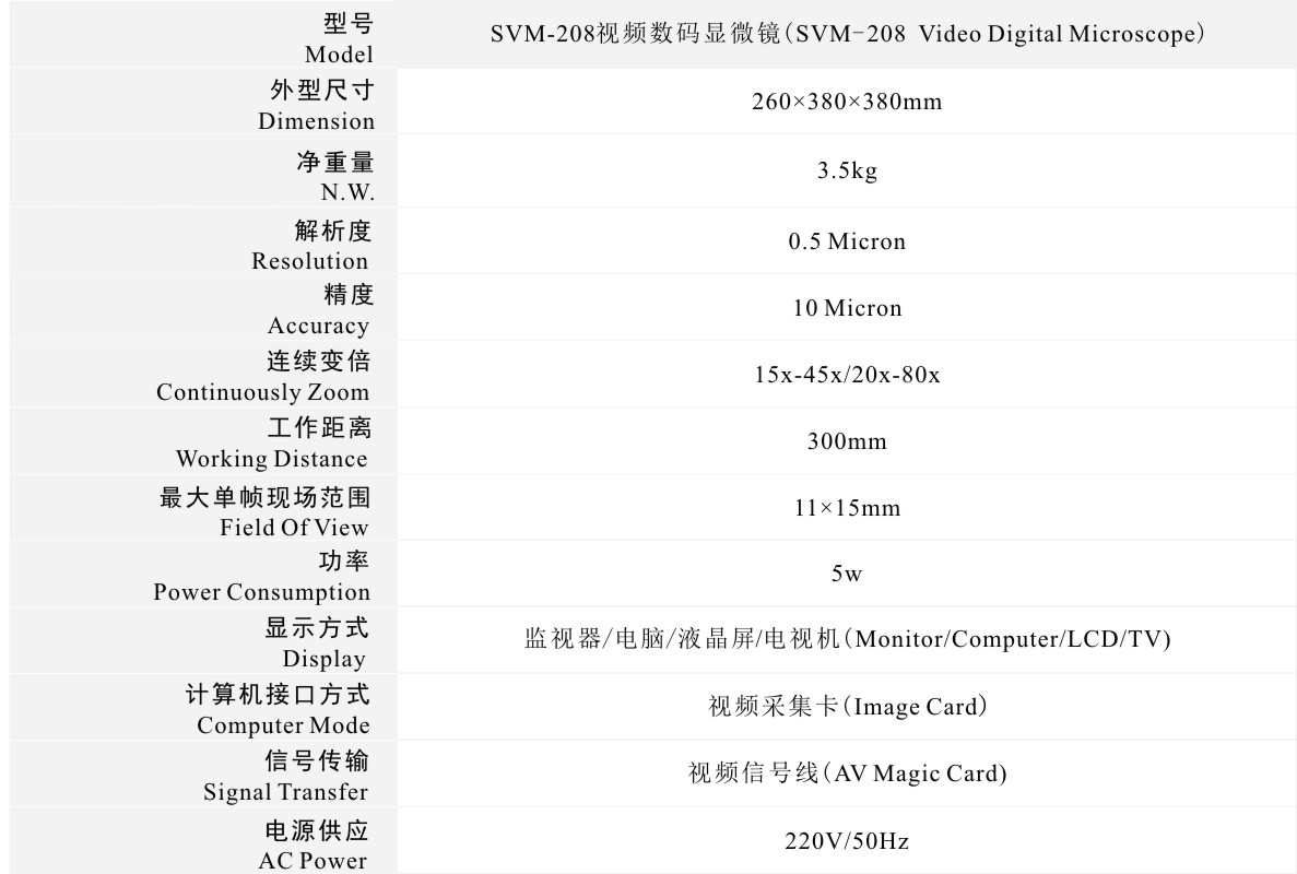 | 產(chǎn)品名稱(chēng):SVM-208視頻數(shù)碼顯微鏡 |