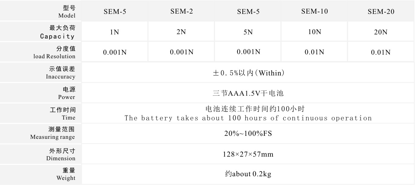 SEM系列數(shù)顯式張力計(jì)是新一代通用型便捷式低功耗張力測(cè)試儀器。具有體積小、重量輕、容易攜帶、多功能、高精度等特點(diǎn),適用于繼電器接點(diǎn)壓力、電子開(kāi)關(guān)、微型自動(dòng)電話設(shè)備接點(diǎn)和銜鐵壓力等機(jī)械壓力、磁帶錄音機(jī)緩沖裝置壓力等接觸點(diǎn)壓力和張緊力的測(cè)試。