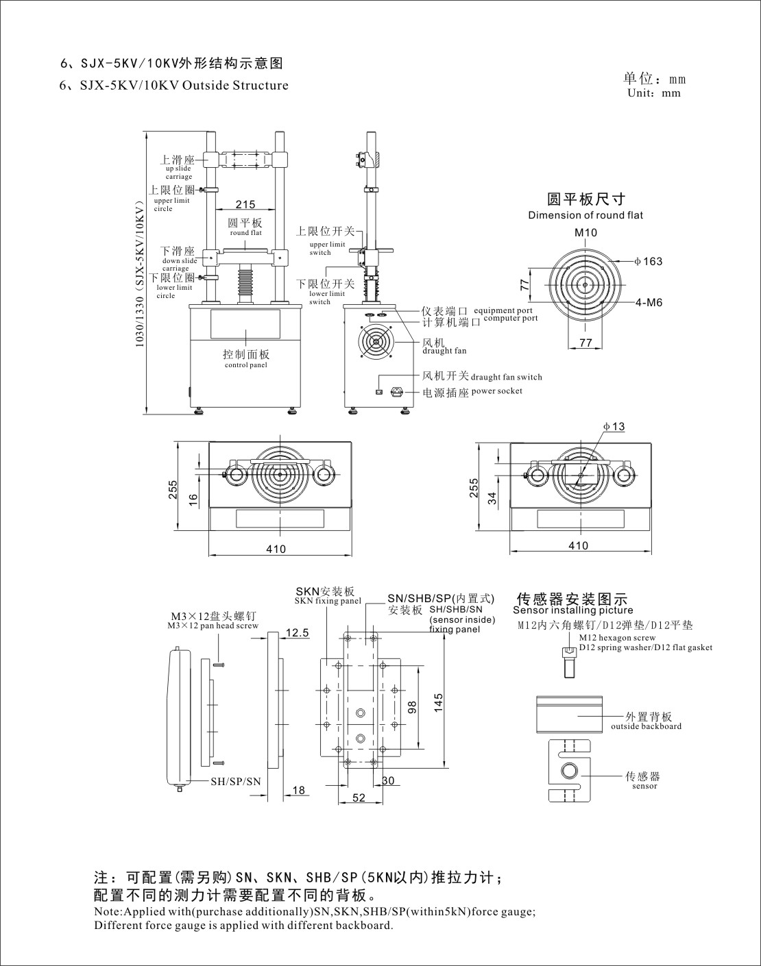 SJX-10KV電動立式機臺采用雙立柱結構,具有穩(wěn)定性好,適用范圍廣,使用方便等優(yōu)點,并具有無級調速,手動(點動)、自循環(huán)切換功能可預設定往復測試次數。與SHB配套可預設定自動停機負荷。配備推拉力計,適用于各種推拉負荷的拉壓負荷、插拔力、疲勞試驗、破壞試驗等測試。