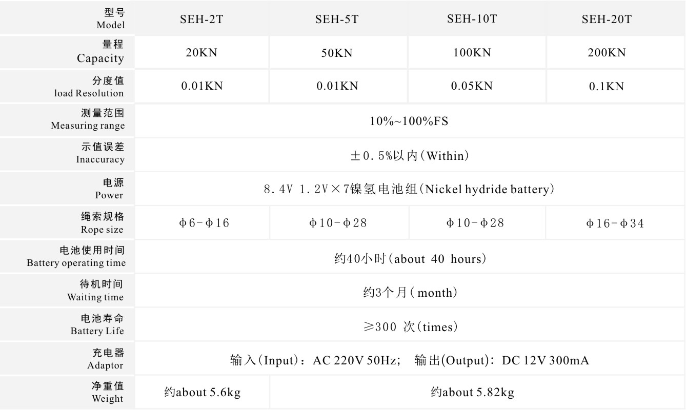 預置10組繩索規(guī)格,每組規(guī)格最多可存儲10組測試數(shù)據(jù),具有平均值換算功能; |