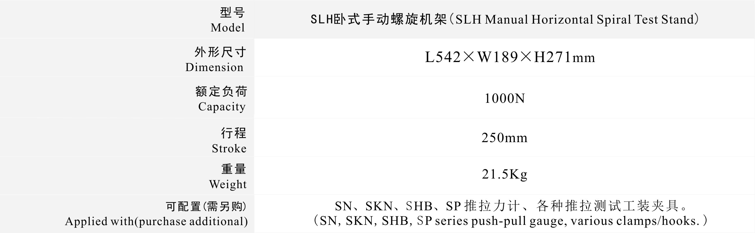 SLH臥式手動螺旋機架配備推拉力計,組合成不同用途的試驗機臺,適用于各種插拔力、按壓力、破壞試驗等測試。機架采用梯形螺桿傳動,整體螺母設(shè)計;具備手動操作,簡單穩(wěn)定。