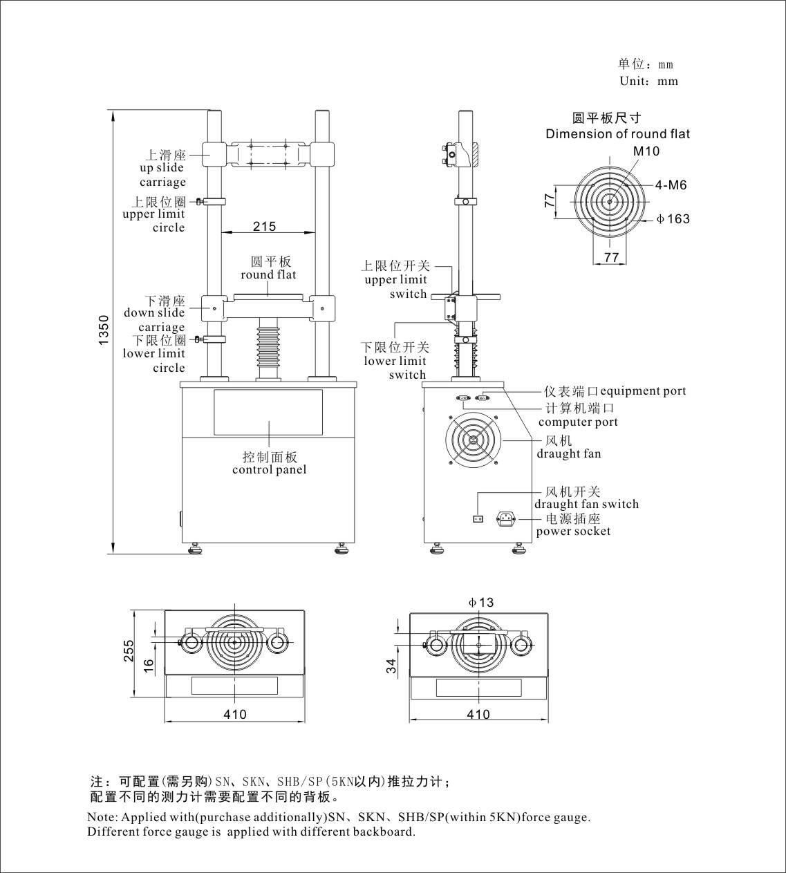 可配置(需另購):SHB/SP(2N~10KN)推拉力計,各種推拉測試工裝、夾具。