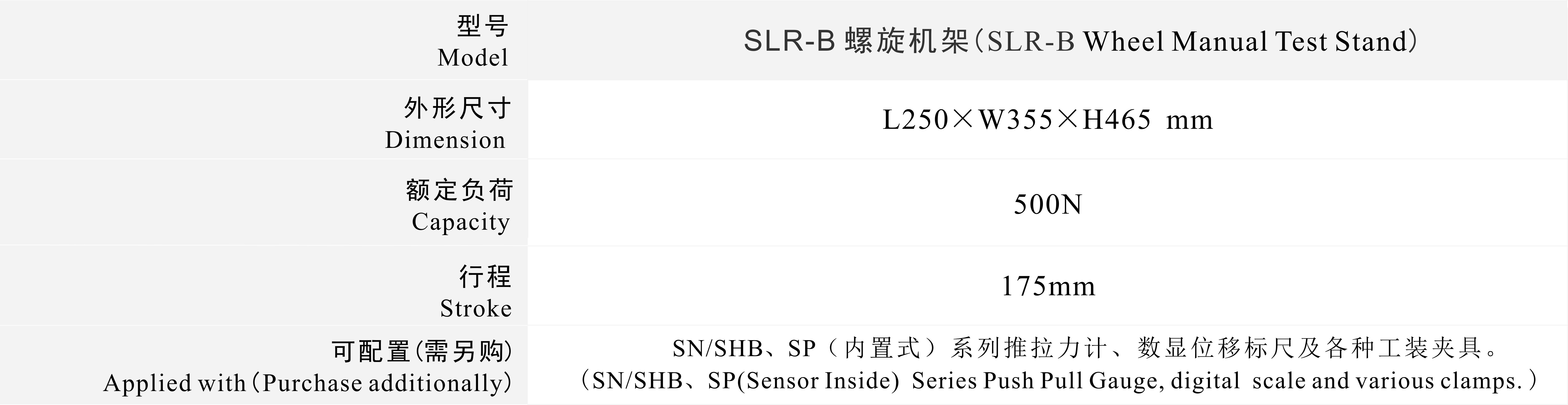 SLR-B螺旋機(jī)架配備推拉力計(jì),組合成不同用途的試驗(yàn)機(jī)臺(tái),適用于各種插拔力、按壓力、破壞試驗(yàn)等測(cè)試。底座標(biāo)配的移動(dòng)平臺(tái),可實(shí)現(xiàn)左右、前后移動(dòng),方便準(zhǔn)確裝夾。